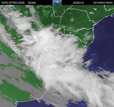 desplazamiento de una depresión atmosférica asociada a un área de tormentas